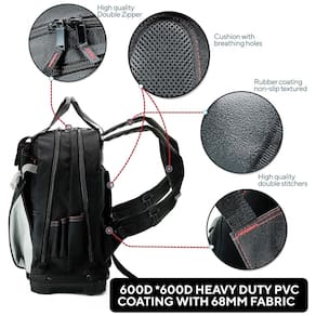 NÃO DEIXE NADA PARA TRÁS Os 2 compartimentos principais com zíper, bolsos laterais e frontais nesta mochila de ferramentas permitem que você carregue todas as ferramentas necessárias para fazer o trabalho. Os bolsos também são ajustáveis para que você possa carregar ainda mais equipamentos com facilidade. COSTURA DUPLA REFORÇADA Você vai adorar o ponto premium nesta mochila resistente. Eles oferecem suporte adicional nos principais pontos de desconforto para evitar desgaste, independentemente do que você carrega ou da frequência com que usa sua bolsa. Especialmente projetado para durar uma vida inteira CONFORTO Acolchoado EXTRA LEVE Esta incrível bolsa de ferramentas possui alças acolchoadas cuidadosamente espessas para distribuir o peso para um apoio confortável para as costas e ombros. Uma parte traseira respirável permite um fluxo de ar fácil para não esfriar o suor, e o fundo reforçado garante que ele permaneça na posição vertical quando colocado. PILHAS DE LUGARES PARA GUARDAR TODAS AS SUAS FERRAMENTAS Com mais de 30 bolsos dentro dos compartimentos com zíper, bolsos laterais e externos, esta mochila de ferramentas permite que você organize sem esforço todas as suas ferramentas, peças e acessórios. É a mochila perfeita para qualquer faz tudo Marca: Não Informado