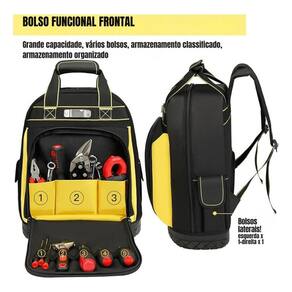 Base Moldada: Mantém a mochila estável e evita tombos, mantendo suas ferramentas seguras e secas até em superfícies úmidas. Design Prático e Confortável: Alças ajustáveis e acolchoadas, zíper de fácil deslizamento e faixas refletivas para maior segurança. Grande Capacidade: Com 15 bolsos, elásticos e compartimentos para ferramentas de todos os tamanhos, facilitando o acesso rápido. Ideal para Profissionais: Perfeita para eletricistas, encanadores, e mais. Praticidade e organização para seu trabalho Marca: Não Informado