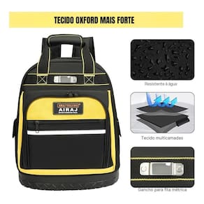 Esta mochila de ferramentas é feita com tecido Oxford 1680D ultra resistente, durável, e à prova d'água. Suporta qualquer desafio com excelente proteção e longa vida útil.