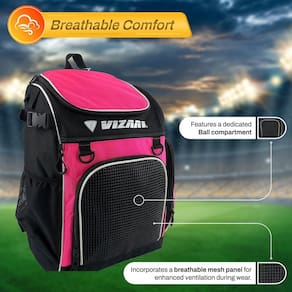 Vizari Mochila de futebol com compartimento de bola e bolso de bola ventilado e bolsos cargo laterais de malha para adultos e adolescentes