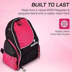 - Armazenamento multifuncional de equipamentos de futebol: diga adeus ao malabarismo com vários itens! A mochila rosa neon Vizari é projetada para carregar todos os seus itens essenciais. Com um compartimento principal espaçoso e um grande bolso de bola de malha que abre pela frente, esta mochila de bola de futebol cabe confortavelmente em uma bola de tamanho 5, tornando-a a melhor solução para organizar seu equipamento de futebol. Perfeita para bolsas de futebol juvenis para meninos e meninas.