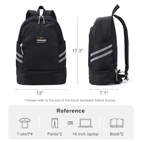 coofay Mochila de ginástica para mulheres mochila impermeável com compartimento para sapatos mochila de viagem mochila esportiva grande bolsa de academia, Preto, grande, Mochilas de Viagem - Espaço de armazenamento multifuncional: cerca de 35 litros de espaço de armazenamento. O compartimento principal espaçoso pode conter de 4 a 6 blusas finas ou calças, os 3 bolsos de malha podem ser utilizados para armazenar iPad, telefones celulares ou carregadores bancários. O bolso interno com zíper pode ser utilizado para guardar passaportes ou cartões de crédito. Há também dois bolsos laterais que podem armazenar garrafas de água ou guarda-chuvas. Há também um bolso antirroubo na parte de trás que pode ser utilizado para guardar carteiras. - ? Compartimento separado para sapatos e bolso molhado ?: o compartimento separado para sapatos pode conter um par de sapatos, o que é conveniente para você trocar quando você vai nadar, fazer exercícios e jogos de bola, para que você possa usá-lo em esportes, viagens de negócios e vida diária. O bolso molhado pode acomodar itens molhados, como produtos de higiene pessoal ou toalhas, que são convenientes para você usar quando estiver hospedado em um apartamento de hotel ou quando você enxaguar após o exercício, tornando sua viagem ou exercício mais confortável. - ?Adequado para vários cenários?: esta mochila tem compartimentos separados com diferentes funções, que podem armazenar roupas, sapatos, artigos de higiene pessoal, etc., para atender aos seus esportes e caminhadas ou viagens curtas. Também pode armazenar revistas, iPads, telefones celulares e carregadores portáteis para atender às suas necessidades diárias, de trabalho e lazer. - Bom desempenho à prova d'água: esta mochila é feita de material de nylon, que tem um bom efeito à prova d'água. Ao mesmo tempo, o tecido é macio, flexível e de boa qualidade. - ? Design dobrável para armazenamento fácil?: quando não estiver em uso, esta mochila pode ser dobrada em pequenos itens para facilitar o armazenamento e ocupa muito pouco espaço. Como fazer: Abra o zíper inferior, vire a bolsa de sapatos independente de cabeça para baixo, coloque a mochila de cabeça para baixo e feche o zíper depois de terminar.