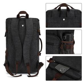 Mochila Kalesi com várias funções Dimensões: ²Tamanho: 29,8 x 23 x 50,8 cm (C x L x A), Grande ²Peso: 0,9 kg/0,9 kg ²Material: Oxford ²Zíper: Zíper SBS ²Padrão: preto vintage ² Gênero: masculino e feminino Estilo: moderno, simples, casual 4 formas de transporte (mochila/bolsa de ombro/bolsa transversal/bolsa com alça): ² Alças grossas e acolchoadas para uso na mochila. ² Alça estável e confortável para uso na sacola. ²Alça ajustável e resistente para uso na bolsa de ombro/tiracolo. Armazenamento espaçoso: ²Bolso frontal: com 2 compartimentos internos, pode guardar caneta, celular, celular, etc. ²Compartimento principal: Existem vários bolsos, amplos o suficiente para seus itens essenciais do dia a dia (roupas, laptop, iPad, etc. ). ²Bolsos laterais: 2 bolsos em ambos os lados para garrafas, chaves de guarda-chuva ou alguns itens pequenos. ²Compartimento de sapatos: algumas roupas sujas ou sapatos podem ser colocados nele. Garantia de qualidade: Forneceremos um serviço pós-venda bom e oportuno. Se você tiver algum problema de qualidade, sinta-se à vontade para entrar em contato conosco. Nós as resolveremos para você o mais rápido possível. - Dimensões: 29 x 23 x 50 cm (C x L x A). Leve, apenas 1 kg. - ??Grande capacidade?O espaço espaçoso com bolsos práticos oferece armazenamento suficiente de itens e ajuda você a organizá-los facilmente, incluindo 1 bolso frontal/1 compartimento grande principal/2 bolsos laterais (para garrafa e guarda-chuva)/1 compartimento para sapatos. O compartimento principal contém 1 bolso superior de malha com zíper, 1 compartimento para notebook, 2 bolsos com zíper e 2 compartimentos, pode guardar seu iPhone, iPad, caneta, chaves, carteira, revista, roupas, e também pode ser colocado em câmeras, carregador portátil etc. - ??Material de qualidade?Feito de lona vintage, é durável, resistente, amigo da pele e fácil de limpar ou limpar. Adote zíperes profissionais SBS e almofadas grossas, acolchoadas e respiráveis, fornecem suporte forte para as costas e liberam a carga dos ombros. A alça e a alça de ombro são leves e estáveis com um serviço de longa duração. - ??Design funcional?4 formas de transporte (mochila/bolsa de ombro/bolsa transversal/bolsa com alça). Possui uma alça longa ajustável adequada para todos os formatos de corpo. As alças da mochila podem ser escondidas quando você a usa como bolsa de ombro. Você pode converter a bolsa livremente e facilmente para atender às suas diferentes necessidades. Pode ser sua mochila do dia a dia, bolsa de laptop espaçosa para viagens de negócios na faculdade ou uso diário em qualquer lugar. - ??Presente ideal?Projetada e produzida pela experiente fabricante de bolsas Kalesi, nossa mochila pode ser usada por um longo tempo e ser sua escolha ideal para o fim de semana, férias, compras, trabalho, academia, esporte, praia e outras atividades ao ar livre. Além disso, pode ser um presente decente para seus amigos, namorados, pais, líderes, etc. (adultos))Este item não se destina a ser utilizado por crianças menores de 12 anos.