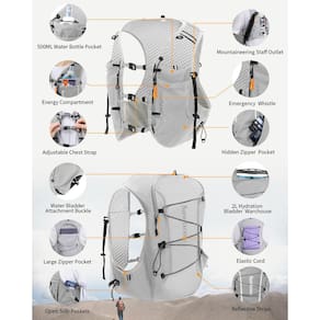 - ?Aplicações extensivas?Este pacote de hidratação é o equipamento esportivo perfeito para você hidratar enquanto corre, maratona, ciclismo, caminhada, escalada, corrida em trilha ou qualquer aventura ao ar livre. Este colete de corrida é uma ótima escolha por sua respirabilidade incomparável, opções de armazenamento atenciosas e conforto geral. Também é um presente atencioso para familiares e amigos que amam o ar livre