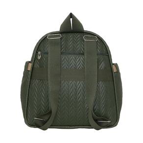 - Bolso da frente é térmico, possui elástico para segurar mamadeira e potinhos com comidas;