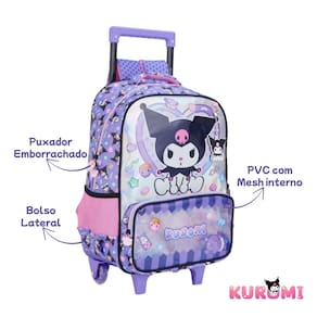 Mochila de Rodas Escolar Kuromi Hello Kitty – Infantil Meninas