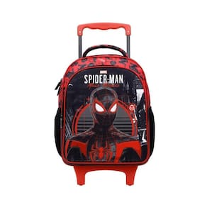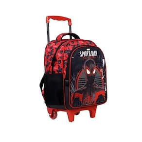 Em tamanho 14 com Alças de ombro , produzida em poliéster resistente e estampado. Painel frontal PVC patch reticular - Compartimento principal amplo e mais um compartimento extra , 2 bolsos laterais mesh, zíper com puxadores personalizados, alça de mão em nylon com mesh e piping forrado. Carrinho em metal com travas.