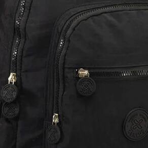 Possui 1 compartimento principal amplo com zipper, 2 bolsos frontais com zipper , 2 bolsos laterais, puxadores emborrachados personalizados Alças acolchoadas com regulagem para maior conforto e versatilidade Costas acolchoadas Acompanha chaveiro de pelucia