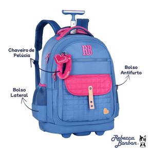 Mochila De Rodas Rebecca Bonbon Chaveiro de Pelúcia Juvenil - Clio Style