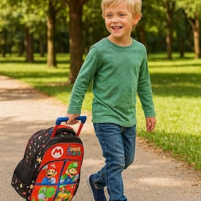 Mochila De Rodas Super Mario Bros Escolar Passeio - Luxcel Apresentamos a incrível Mochila de Rodas Super Mario, perfeita para as aventuras escolares do seu filho Com um design divertido que traz a icônica presença do Super Mario, não é apenas estilosa, mas também super funcional. A mochila de rodas do Super Mario facilita o transporte, ideal para meninos em idade escolar. Com estampa vibrante dos personagens, alças ajustáveis e amplo espaço interno, é perfeita para o dia a dia na escola com estilo e diversão. Características Mochila: Alça de mão Alça de costas Bolsos laterais Identificador personalizado Puxadores em Zíper Especificações Mochila: Marca: Super Mario Medidas Aproximadas Mochila A x L x P : 41cm x 30cm x 14cm Peso: 815g Aprox Capacidade: 17L Composição do produto: Poliéster e PVC Conteúdo da Embalagem: IC41392MO - 1 Mochila Rodas Super Mario As cores podem variar entre as imagens mostradas acima e o produto. Imagens meramente ilustrativas. Todas as informações divulgadas são de responsabilidade exclusiva do fabricante. de 90 dias contra defeito de fabricação. Marca: Não Informado