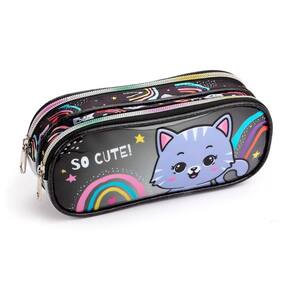 Contém: 01 un - Mochila de Rodinhas Gato com paete Preto - Seanite. 01 un - Lancheira térmica Gato com paete Preto - Seanite. 01 un - Estojo Duplo Gato com paete Preto - Seanite.