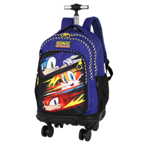 Destaques do Produto: Estampa exclusiva com Sonic, Tails e Knuckles em cores vivas. Carrinho com rodinhas 360°, que garantem maior estabilidade e praticidade. Alça retrátil em metal com regulagem de altura. Bolso frontal com zíper e laterais em tela para garrafinha. Detalhes personalizados, incluindo zíper com puxadores em formato de anel. Pode ser usada como mochila de costas ou de rodinhas. Produto oficial, licenciado e com qualidade Luxcel.