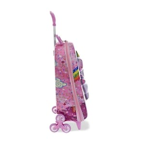 Mochila 3D Maxtoy confeccionada em EVA de alta qualidade e resistência, proporcionando um corpo rígido, mas bastante flexível. Forma 3D termomoldada, processo patenteado e exclusivo. Não tem nada igual no mundo. Sistema de fechamento com zíper de qualidade abertura de 360 e fivelas em plástico ajustáveis que limitam a abertura da mala e podem ser facilmente abertas e fechadas; Sistema de 3 rodas exclusivo, confeccionadas com polipropileno em seu miolo e PVC de alta qualidade na parte externa, o que garante maior resistência e maior aderência ao solo, facilitando o atrito com qualquer tipo de piso, diminuindo a trepidação e aumentando a estabilidade da mochila; Seu formato anatômico e exclusivo com 3 rodinhas, proporciona e garante maior segurança e conforto em qualquer tipo de piso, inclusive para subir escadas e elevações desniveladas; Seu interior possui grande espaço e é dividido em 2 compartimentos com uma malha elástica; Seu carrinho em alumínio garante leveza e qualidade superior ao produto, evitando ferrugens e sujeira; Fácil de limpar, não necessita de manutenção; Possui 02 alças em PVC: alça de mão na parte superior e alça retrátil; Superfície interna e externa impermeáveis, o que protege contra sujeiras e facilita a limpeza. Basta usar um pano úmido; Área de identificação onde pode ser colocado o nome da criança, o nome dos pais e telefones de contato.