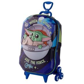 Mochila De Rodinhas 3D Maxtoy Star Wars Grogu Azul Verde
