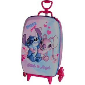 Mochila De Rodinhas 3D Maxtoy Stitch E Angel Rosa