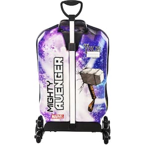 Mochila 3D Maxtoy confeccionada em EVA de alta qualidade e resistência, proporcionando um corpo rígido, mas bastante flexível. Forma 3D termomoldada, processo patenteado e exclusivo. Não tem nada igual no mundo. Sistema de fechamento com zíper de qualidade abertura de 360 e fivelas em plástico ajustáveis que limitam a abertura da mala e podem ser facilmente abertas e fechadas; Sistema de 3 rodas exclusivo, confeccionadas com polipropileno em seu miolo e PVC de alta qualidade na parte externa, o que garante maior resistência e maior aderência ao solo, facilitando o atrito com qualquer tipo de piso, diminuindo a trepidação e aumentando a estabilidade da mochila; Seu formato anatômico e exclusivo com 3 rodinhas, proporciona e garante maior segurança e conforto em qualquer tipo de piso, inclusive para subir escadas e elevações desniveladas; Seu interior possui grande espaço e é dividido em 2 compartimentos com uma malha elástica; Seu carrinho em alumínio garante leveza e qualidade superior ao produto, evitando ferrugens e sujeira; Fácil de limpar, não necessita de manutenção; Possui 02 alças em PVC: alça de mão na parte superior e alça retrátil; Superfície interna e externa impermeáveis, o que protege contra sujeiras e facilita a limpeza. Basta usar um pano úmido; Área de identificação onde pode ser colocado o nome da criança, o nome dos pais e telefones de contato.