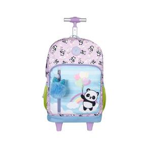 Mochila de Rodinhas College Panda Balão Lilás Juvenil Xeryus