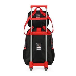 Kit mochila de rodinhas e lancheira luxcel hot wheels Kit mochila de rodinhas com bolsos laterias em tela com elástico, alças de costas espumadas e reguláveis, silk frontal, bolso frontal com zíper, alça de mão. Lancheira estampada com alça de costas e alça de mão, além de etiquetas personalizadas.
