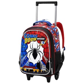 Mochila de Rodinhas Escolar Infantil Spider Comic Book Hero - Inspirada no universo dos super-heróis, esta mochila de rodinhas une estilo, praticidade e versatilidade. Com uma estampa vibrante em estilo comic book, ela possui alças de costas ajustáveis e acolchoadas, além de um sistema de rodinhas suaves, garantindo conforto ao carregar e a opção de puxá-la com facilidade. Ideal para pequenos aventureiros que buscam ação e praticidade no dia a dia escolar