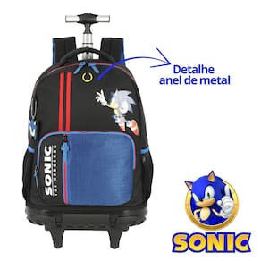 Mochila de Rodinhas Escolar Sonic Ouriço Meninos Juvenil - Cor: Preto
