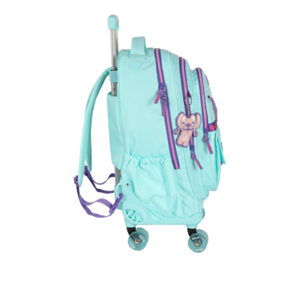 Marca: Luxcel (Licenciada Oficialmente Disney/Lilo & Stitch) Personagem/Tema: Stitch. Modelo: Mochila de Rodinhas (Carrinho embutido). Design: Cor Turquesa com detalhes em Roxo/Lilás e Pink. Frase: "OHANA QUER DIZER FAMÍLIA" em destaque. Funcionalidade: Rodinhas em silicone e haste de alumínio retrátil. Diferencial: Acompanha Chaveiro de Borracha do Stitch e alça decorativa. Organização: Compartimento principal amplo, bolso frontal grande e bolsos laterais em rede (mesh). Conforto: Alças de costas acolchoadas para uso opcional.
