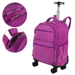 Características; Ocasião: Escolar, dia a dia, passeio Alça de mão Alça de costas reforçada acolchoada Alça carrinho ajustável 4 Rodinhas de giro 360 2 Compartimentos 2 Bolsos frontais 2 Bolsos laterais para garrafa Compartimento interno para notebook
