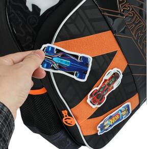 - É confeccionada em poliéster de alta qualidade, logo em efeito com relevo, fechamento com zíper e puxadores personalizados - Na parte frontal possui carrinhos em PVC removíveis, e pista feita em tecido adesivo para facilitar a mudança de posição dos carrinhos. - Estampa Exclusiva Hot Wheels: Com uma temática de pista com carrinhos, a mochila destaca-se pelo visual moderno e dinâmico. - Possui 1 compartimento espaçoso principal e 1 bolso grande frontal com fechamento em zíper e puxadores personalizados, e dois bolsos laterais telados. - Possui alça de mão reforçada e alças traseiras acolchoadas e reguláveis. - Possui rodinhas e apoio frontal. - Possui puxador de haste em metal para maior conforto.
