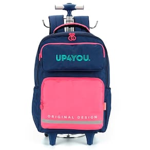 Contém: 01 un - mochila de rodinhas escolar azul e rosa up4you - luxcel. 01 un - lancheira térmica up4you azul e rosa escolar - luxcel
