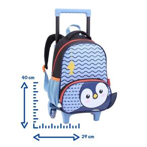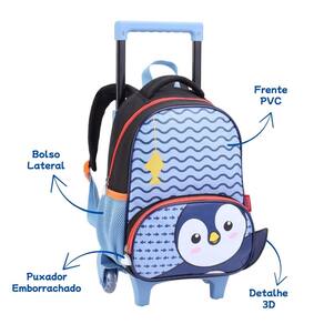 Características Mochila: - Estampa divertida e colorida de Pinguim - Rodinhas resistente em gel - Alça De Mão - Alças acolchoadas para usar como mochila nas costas - Compartimento principal espaçoso + bolso frontal - Bolsos laterais para garrafinha ou acessórios - Material leve, durável e fácil de limpar - Detalhe 3D