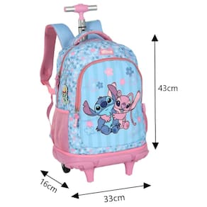 Mochila de Rodinha Luxcel Stitch Rosa   Desperte seu espírito aventureiro com a Mochila Escolar de Rodinha Stitch Disney – Lançamento Exclusivo!   Perfeita para os fãs do adorável alienígena Stitch, esta mochila combina estilo e funcionalidade com um toque divertido e moderno.    Fabricada em material resistente, garante durabilidade para acompanhar a rotina intensa dos estudantes. Seu compartimento principal espaçoso permite guardar livros, cadernos, estojos e outros materiais escolares com organização e segurança. Além disso, conta com bolsos laterais ideais para garrafinhas e um bolso frontal com zíper para pequenos objetos.   As alças acolchoadas e ajustáveis proporcionam mais conforto no transporte, enquanto o formato ergonômico distribui melhor o peso nas costas. É ideal para escola, passeios e outras atividades do dia a dia.   Características da Mochila Escolar: - 1 Bolso Principal com bastante espaço - 1 Bolso Frontal com fechamento em zíper - 2 Bolsos laterais para squeeze - Alças de costas acolchoadas e ajustáveis - Alça de mão reforçada na parte superior - Puxadores personalizados - Material: 100% Poliéster - Forro: 100% Poliéster   Dimensões da Mochila Escolar: Altura: 43 cm Largura: 33 cm Profundidade: 16 cm   Conteúdo: - 1 Mochila