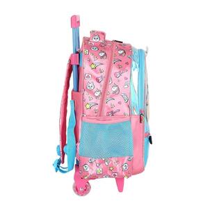 Mochila de rodinhas com alça, bolsos laterias em tela com elástico, alças de costas espumadas e reguláveis, silk frontal, bolso frontal com zíper, alça de mão.