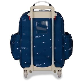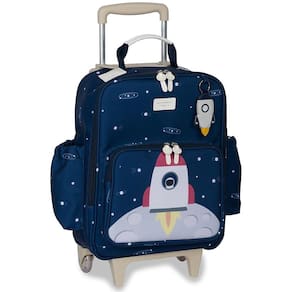 Mochila de rodinhas MasterBag com bolso principal grande com vários compartimentos internos, bolso frontal personalizado, bolsos laterais com elástico para garrafinha. Além de contar alça de mão e etiquetas personalizadas.