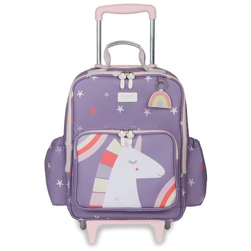 Mochila de rodinhas MasterBag com bolso principal grande com vários compartimentos internos, bolso frontal personalizado, bolsos laterais com elástico para garrafinha. Além de contar alça de mão e etiquetas personalizadas.