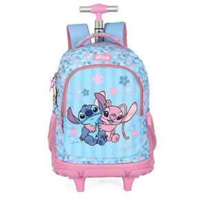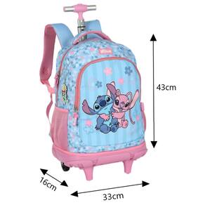 Mochila de Rodinhas Média Juvenil Costa Stitch e Angel Rosa