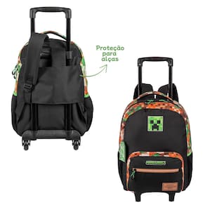 Com design moderno e estampas exclusivas do game, ela oferece espaço interno amplo para os materiais escolares, rodinhas resistentes que facilitam o transporte e haste retrátil para mais praticidade no dia a dia.