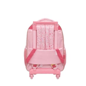 Mochila de rodinhas Pacific com alças de costas, que conta com estampa frontal, bolso frontal, telinha lateral, compartimento grande com fechamento em zíper e etiquetas personalizadas.