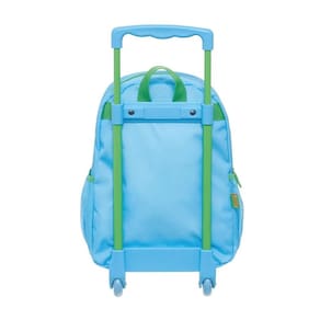 Mochila de rodinhas Pacific SEM alças de costas, que conta com estampa frontal, bolso frontal, telinha lateral, compartimento grande com fechamento em zíper e etiquetas personalizadas.
