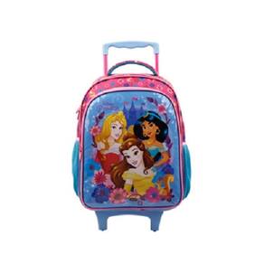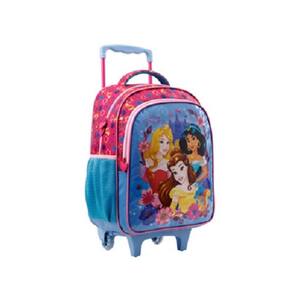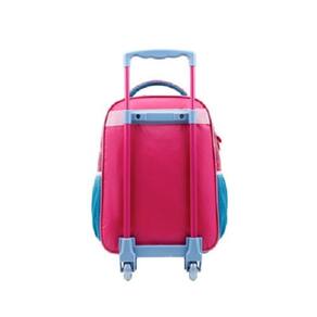 Em tamanho 14", produzida em poliéster resistente e estampado. Painel frontal em PVC com detalhes com glitter - Compartimento principal amplo e mais um compartimento extra , 2 bolsos laterais mesh, zíper com puxadores personalizados, alça de mão em nylon com mesh e piping forrado. Carrinho em metal com travas.