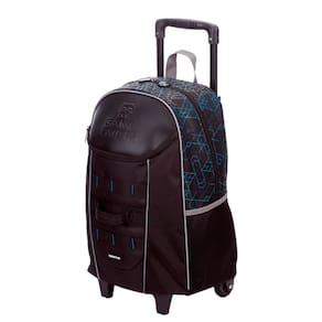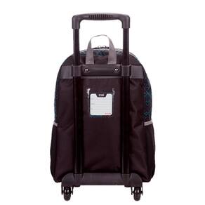 Mochila de rodinhas Sestini sem alça de costas, bolso frontal com zíper, bolso lateral com elástico, tag identificador e painel personalizado.