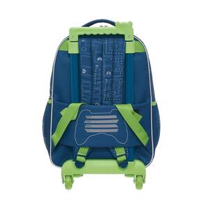 Mochila de rodinhas Tigor T Tigre com alças de costas, que conta com estampa frontal, bolso frontal, telinha lateral, compartimento grande com fechamento em zíper e etiquetas personalizadas.