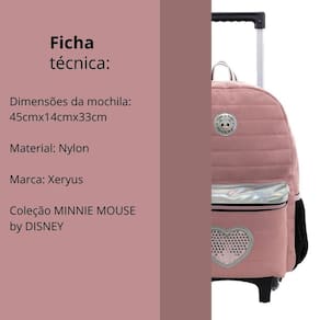 Diferenciais - Chaveiro Charmoso: Um detalhe que adiciona um toque de fofura ao visual. - Puxadores Exclusivos: Zíperes com design diferenciado, unindo estilo e facilidade de uso. - Conforto Sob Medida: Alça ajustável que proporciona uso confortável por longos períodos. - Organização Inteligente: Múltiplos compartimentos para manter tudo bem distribuído e fácil de encontrar. - Carrinho Resistente: Feito de metal pintado, possui travas de altura, 2 rodas e freio frontal para maior estabilidade e praticidade.