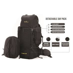 As mochilas Colonel Series são ideais para caminhadas de longa duração ou viagens com duração entre 12 e 20 dias, dependendo do tamanho que você escolher. A mochila vem com uma mochila destacável que pode ser desmontada para caminhadas ou viagens curtas. A série Colonel foi construída para durabilidade e feita para uso intenso. As bases e o revestimento de tecido duplo na parte inferior complementam e a tornam ideal para terrenos acidentados. O amortecimento macio e respirável na parte de trás oferece conforto e fluxo de ar fácil enquanto caminha por longas horas. O cinto flexível pode ser ajustado para caber abaixo da pelve para gerenciamento de carga e o mecanismo de ajuste do tronco o torna adequado para vários físicos. Equipada com um sistema de estrutura interna feito de acolchoamento de fibra e duas hastes de metal, várias tiras e cabos para segurar equipamentos adicionais e costurada usando poliéster repelente à água 900D, a mochila Colonel Series é uma mochila multiuso construída para transportar o excesso de bagagem confortavelmente. A Tripole Gears também é a fabricante desta mochila. - Pacote diurno removível – Pacote diário com capacidade de 12 litros que pode ser destacada da mochila principal para caminhadas ou passeios pela cidade para carregar pequenos itens úteis, como lanches e água. Vem com ganchos mosquetão na frente e um gancho interno com alças acolchoadas e malha traseira respirável. - Estrutura interna – a mochila é projetada para viagens e caminhadas de longa duração e está equipada com uma estrutura de fibra na parte traseira composta por uma haste de alumínio para fornecer a máxima capacidade de carga. - Capa de chuva – a mochila vem com uma capa de chuva totalmente à prova d'água que é armazenada dentro do bolso de fecho aderente na base da mochila. A capa também é útil para evitar poeira. - Abertura inferior – Compartimento de fácil acesso na parte inferior para armazenar sapatos, sacos de dormir, roupas sujas e outros itens úteis que você pode querer acessar facilmente durante a viagem. Esta seção é separada por um tecido do compartimento principal que pode ser afrouxado para transformar toda a mochila em um compartimento. - Outras características: tecido de poliéster resistente à água, ferragens duráveis e zíperes | Amortecimento macio na parte de trás oferece conforto e bom fluxo de ar durante longas horas | Vários bolsos práticos na frente, lateral e superior para armazenar itens variados.
