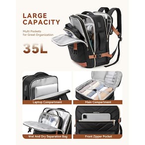 Esta mochila de viagem aprovada é feita de tecido de nylon leve, durável e resistente à água, tem melhor permeabilidade ao ar e dissipação de calor. Design confortável com fluxo de ar nas costas com acolchoamento espesso e macio e alívio eficaz da pressão traseira, enquanto equipada com uma fivela ajustável no peito. Esta mochila de viagem cabe sob o assento ou no compartimento superior, aprovada pela Spirit, Frontier e outras companhias aéreas econômicas, tornando-a o item pessoal perfeito para viagens aéreas. - ? Item pessoal aprovado pela companhia aérea e amigável à TSA: Informações de tamanho 42 x 29,5 x 19,5 cm (A x C x L). A mochila de mão atende à maioria dos requisitos internacionais de bagagem de mão, como Spirit, Frontier, Jet Blue, Easy Jet e outras companhias aéreas econômicas. Esta mochila de viagem feminina também cabe sob o assento ou no compartimento superior. A bolsa de itens pessoais pode ser aberta em até 180 graus, permitindo que você passe pela segurança do aeroporto para economizar tempo rapidamente. - ? Grande capacidade com vários bolsos: esta mochila para viagem tem 4 compartimentos e capacidade para 35 litros. O compartimento principal pode armazenar de 3 a 5 dias de itens essenciais de viagem com uma alça em forma de "X" para consertá-los. O compartimento separado para laptop (com um compartimento acolchoado protege efetivamente seu notebook de danos) cabe em laptops de até 15,6 polegadas. A bolsa de separação úmida e seca é feita de material impermeável de alta densidade que pode ajudá-lo a separar itens secos e molhados. - ? 2 cubos de embalagem: a mochila de viagem vem com 2 cubos extras: 1 bolsa de artigos de higiene à prova d'água aprovada pela TSA com tamanho 19,5 x 6,5 x 15,5 cm, completamente com as regras 3-1-1, garantindo uma viagem tranquila pela segurança do aeroporto e economizando seu tempo. O material de PVC transparente é um bônus para facilitar a limpeza. 1 bolsa de sapatos com tamanho 42 x 22 cm, pode armazenar até 2 pares de sapatos femininos. - ? Conveniência para viagens, porta de carregamento USB e tipo C: com uma porta USB e uma porta tipo C, a mochila feminina para laptop oferece uma maneira fácil de carregar seus dispositivos pelo carregador portátil conectado, que é colocado em um bolso interno dedicado. (Observação: precisa preparar seu carregador portátil e cabo de carregamento externo). A capa de carrinho bem tricotada libera suas mãos. A alça de bagagem é bastante conveniente para você fixar a bolsa de laptop no carrinho de sua bagagem e ficar com as mãos livres e seguro em movimento. - ? Multiuso e garantia: esta mochila de viagem grande é um presente perfeito para amigos, familiares ou mulheres, para aniversários ou Dia dos Namorados. É uma mochila de fim de semana, caminhada, viagem de avião, mochila de trabalho, mochila universitária ou mochila casual. A BOSTANTEN oferece serviços pós-venda satisfatórios, com o objetivo de resolver problemas quando você estiver usando a mochila de viagem de itens pessoais. Se você tiver alguma dúvida sobre a mochila leve, envie-nos um e-mail. - TECIDOS ATUALIZADOS E CONFORTÁVEL: a bolsa de itens pessoais é feita de nylon resistente à água, tem melhor permeabilidade ao ar e dissipação de calor do que o tecido de poliéster, mais resistente a rasgos e resistente à abrasão. Com acolchoamento grosso e macio e uma fivela ajustável no peito, ajuda a reduzir o desconforto no ombro e proporcionará a você a sensação de uso mais confortável. Esta mochila de viagem possui alças na parte superior e um lado, fácil de usar de qualquer maneira. Bolsos laterais podem guardar uma garrafa de água ou guarda-chuva.