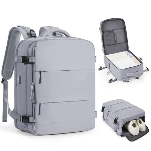 coofay Casual ou versátil, Cinza A, GG, Mochilas de viagem - ?Amplo espaço de armazenamento?Dimensões externas desta mochila de viagem: 36 cm x 20 cm x 45 cm (C x L x A), o compartimento principal pode armazenar 5 ~ 8 peças de roupas diárias. Seu espaço acomoda totalmente suas viagens de curto prazo e viagens de negócios de curto prazo. Há mais de 3 bolsos internos com zíper para iPad, cartões de crédito e outros objetos de valor no mochila e um molhado separado Bolso para artigos de higiene molhados e roupas molhadas. A mochila também tem um compartimento separado para um laptop de 15,6 polegadas. - ?Função de vários bolsos?Esta mochila para viagem tem um compartimento especial para sapatos, que pode guardar tênis (Dica: apenas um par) e pode acompanhá-lo em qualquer lugar. Esta mochila para viagem tem 2 bolsos frontais para iPad, celular, chaves recarregáveis e outros itens pequenos; e 1 bolso para guarda-chuva ou copo. Há também um bolso traseiro antirroubo que pode proteger efetivamente alguns itens pequenos valiosos, como cartões de crédito, de serem roubados. - ?Porta de carregamento USB? A mochila de bagagem de mão tem um cabo de carregamento USB dentro, basta conectar seu próprio tesouro de carregamento, fora da mochila e preparar o cabo de carregamento pertencente ao seu dispositivo, você pode concluir o carregamento do celular ou iPad, realizar a troca de carregamento de vários dispositivos, mas também pode carregar enquanto você caminha, não ficará sem energia e levará a perder as informações importantes. - ?Principalmente suportada em aviões?As dimensões externas da mochila aprovada pela TSA basicamente atendem às dimensões padrão especificadas para embarcar em um avião, para as quais você não precisa se preocupar com o custo extra de entregar seus itens de bagagem acima das dimensões especificadas para embarcar em um avião e o tempo desperdiçado levando-os para o check-in. Além disso, a mochila tem uma alça de bagagem que pode ser anexada à sua mala para relaxar seus ombros. - Mochila multifuncional: esta mochila de viagem é simples, bonita, colorida e moderna. Adequada para viagens diárias, trabalho, fitness, viagens, acampamento e assim por diante. Pode ser usada como uma mochila casual, mochila esportiva, mochila de trabalho.