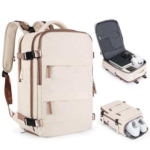 coofay Casual ou versátil, A bege com marrom, G - ? Design grande e multifuncional: o bolso diário para roupas pode conter de 5 a 7 peças de blusas ou calças finas, que podem atender às necessidades de viagens curtas ou viagens de negócios de 2 a 3 dias; também pode ser utilizado para armazenar artigos de papelaria universitários, como revistas, e o compartimento separado para laptop pode acomodar um laptop de 15,6 polegadas para suas necessidades de trabalho ou lazer em empresas e universidades. - ? Compartimento separado para sapatos e bolso úmido: o compartimento para sapatos pode conter um par de chinelos ou tênis de cano baixo, permitindo que você troque livremente em diferentes estados de viagem, viagens de negócios e esportes ao ar livre; o bolso molhado é feito de material impermeável de alta densidade, que pode ser utilizado para armazenar itens molhados, tornando sua estadia em um hotel ou apartamento mais conveniente. - ? Design de porta USB?: esta mochila tem uma porta de carregamento USB, que pode ser conectada a um carregador portátil dentro da bolsa e um celular conectado à parte externa da bolsa por meio de um cabo de dados, permitindo que você carregue seu celular ou iPad enquanto caminha, reduzindo a carga em suas mãos e evitando perder informações. Observe que a mochila não vem com um carregador portátil e cabo de dados, é apenas para a conveniência do carregamento do celular. - ?Aprovado pela maioria dos voos?: As dimensões externas são 46 x 33 x 16 cm (A × L × P), peso de 1 kg (medição manual, apenas para referência, sujeito à medição real). Esta mochila atende aos requisitos de embarque e pode ser aberta e dobrada 180 graus como uma mala, que pode passar rapidamente pela segurança do aeroporto e é especialmente projetada para viagens de avião. - ?CONFORTO E SEGURANÇA?: Design confortável com fluxo de ar nas costas, acolchoamento ventilado espesso e macio com vários painéis oferece suporte para as costas. Alças de ombro respiráveis e ajustáveis e uma fivela no peito para aliviar a pressão no ombro. Esta mochila pode ser colocada no carrinho da mala para facilitar a viagem. Bolso oculto com zíper antirroubo na parte de trás da mochila para evitar que seus pertences sejam roubados. - ?Adequada para muitas ocasiões: a mochila casual é adequada para faculdade, deslocamento, negócios, trabalho, caminhadas, viagens de curto prazo, férias de fim de semana e outras atividades. Se você tiver alguma dúvida, , ficaremos felizes em resolver seus problemas; se você não estiver satisfeito dentro de 1 mês, poderá devolvê-la gratuitamente.