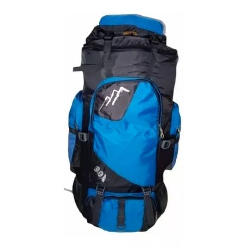 Mochila de viagem de acampamento 90L impermeável com capa de chuva azul