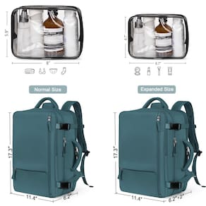 Hanples Mochila de viagem, uma mochila de marca de alta qualidade, foca no design e desenvolvimento de pessoas para viajar. Temos a missão de dar prioridade à experiência do usuário das pessoas, explorando e buscando um estilo de vida moderno, de alta eficiência e único. À prova de A mochila para laptop tem boas almofadas grossas no compartimento do laptop e no compartimento principal para proteger o laptop e outros itens dentro da mochila. É adequada para laptop de 17,3 polegadas. Maior capacidade A mochila de mão pode ser estendida para 40 L (40 x 32 x 20 cm), e o tamanho do compartimento principal 43 x 30 cm x 18 cm. Você pode levá-la para viagens de 3 a 7 dias. À prova d'água. A mochila geral para viagens é feita de tecido à prova d'água para evitar que você se molhe em dias chuvosos, e também há um compartimento de separação seco e molhado dentro, o que é conveniente para você guardar roupas de reposição molhadas. Alça grossa e larga As alças de ombro da mochila de viagem podem ser escondidas e as alças superiores e laterais grossas e largas podem ser usadas como bolsa de mão e também há uma alça de bagagem para ajudá-lo a fixá-la na mala. Esponja respirável A parte de trás da mochila casual é feita de esponja elástica e respirável. É respirável e pode tirar o calor sem superaquecer suas costas. Este item não se destina a ser utilizado por crianças menores de 12 anos. - Mochila extensível: tamanho autêntico: 43.9x29.0x15.7 cm (35L), tamanho expandido: 43.9x29.0x20.8 cm (40L). Com 4 compartimentos grandes e 6 bolsos, cabe em um laptop de 17,3 polegadas, é uma boa companhia para uma viagem de 3 a 5 dias. Tamanho das bolsas de higiene pessoais: 20 x 15 x 6 cm, tamanho das bolsas de higiene pequenas: 17 x 12 x 6 cm. - Conjunto de mochila de viagem multifuncional: contém uma mochila de viagem + 2 bolsas de higiene pessoal transparentes, perfeitas para universidade, biblioteca, academia, trabalho, viagens de negócios, viagens, fins de semana. Também pode ser usada como mochila escolar e de negócios, esta mochila antirroubo é uma ótima opção para estudantes, enfermeiros, homens e mulheres! - Essenciais de viagem de avião: projetada exclusivamente para viagens de avião, esta mochila de bagagem de mão pode ser aberta de 90 a 180 graus facilmente e rapidamente na segurança do aeroporto. Projetada para caber no tamanho máximo permitido em um voo, está disponível para manter sob o assento em voo como item pessoal, para companhias aéreas como Spirit, Easy Jet, Jet Blue. - Porta aberta multifuncional para carregar e ouvir: a porta versátil do lado da mochila de viagem pode fornecer acesso conveniente para carregar seu telefone ou você pode usá-lo como uma porta de fone de ouvido para ouvir sua música premium. (Dicas: apenas uma porta aberta, cabo de carregamento e carregador portátil não estão incluídos) - Impermeável e durável: esta mochila de viagem leve é feita de material de poliéster impermeável durável, resistente e suave, com alças de ombro e seções traseiras ergonomicamente projetadas para tornar sua viagem confortável e agradável! O bolso traseiro oculto mantém seus pertences protegidos contra roubo.