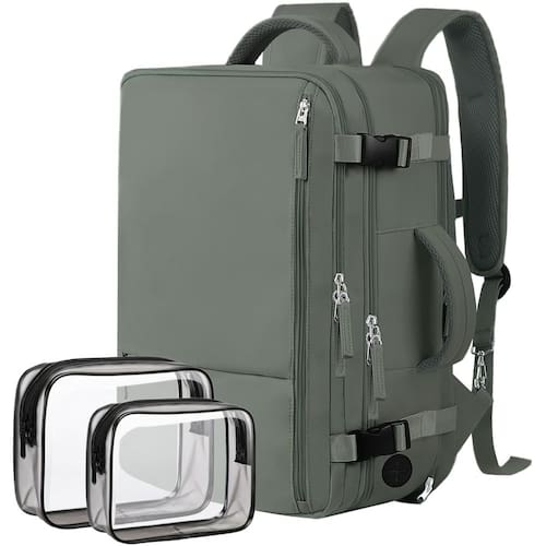 Hanples Mochila de viagem, uma mochila de marca de alta qualidade, foca no design e desenvolvimento de pessoas para viajar. Temos a missão de dar prioridade à experiência do usuário das pessoas, explorando e buscando um estilo de vida moderno, de alta eficiência e único. À prova de A mochila para laptop tem boas almofadas grossas no compartimento do laptop e no compartimento principal para proteger o laptop e outros itens dentro da mochila. É adequada para laptop de 17,3 polegadas. Maior capacidade A mochila de mão pode ser estendida para 40 L (40 x 32 x 20 cm), e o tamanho do compartimento principal 43 x 30 cm x 18 cm. Você pode levá-la para viagens de 3 a 7 dias. À prova d'água. A mochila geral para viagens é feita de tecido à prova d'água para evitar que você se molhe em dias chuvosos, e também há um compartimento de separação seco e molhado dentro, o que é conveniente para você guardar roupas de reposição molhadas. Alça grossa e larga As alças de ombro da mochila de viagem podem ser escondidas e as alças superiores e laterais grossas e largas podem ser usadas como bolsa de mão e também há uma alça de bagagem para ajudá-lo a fixá-la na mala. Esponja respirável A parte de trás da mochila casual é feita de esponja elástica e respirável. É respirável e pode tirar o calor sem superaquecer suas costas. Este item não se destina a ser utilizado por crianças menores de 12 anos. - [Capacidade expansível e adequada para laptop de 17,3 polegadas]: esta mochila para laptop tem um compartimento para laptop com boa almofada grossa, que pode proteger bem o seu laptop e também é adequada para laptops de 17,3 polegadas. Esta mochila de viagem tem muito espaço e bolsos para o que você precisa, e a capacidade é de 35 L. Uma boa companhia para viagens de 3 a 5 dias. (Peso líquido da mochila: 0,9 kg) - [Como item pessoal aprovado pela companhia aérea]: projetada exclusivamente para viagens de avião, esta mochila de mão pode ser aberta de 90 a 180 graus facilmente e rapidamente na segurança do aeroporto. Projetada para caber no tamanho máximo permitido em um voo, está disponível para manter sob o assento em voo como item pessoal, para companhias aéreas como Spirit, Easy Jet, Jet Blue - [Porta aberta multifuncional para carregar e ouvir]: a porta versátil do lado da mochila de viagem pode fornecer acesso conveniente para carregar seu telefone ou você pode usá-lo como uma porta de fone de ouvido para ouvir sua música premium. (Dicas: apenas uma porta aberta, cabo de carregamento e carregador portátil não estão incluídos) - [Material impermeável e design antirroubo]: esta mochila de viagem feminina é feita de poliéster impermeável durável, boa permeabilidade ao ar e dissipação de calor. O bolso traseiro com zíper da mochila protege seus itens preciosos, como carteira, passaporte e cartão de identificação de possíveis roubos ao viajar ou fazer fila. (Dica de limpeza: esfregue com um pano, se necessário) - [Durável e multiuso]: todos os zíperes desta mochila de mão são duráveis, suaves e resistentes à prova de explosão. As alças de ombro podem ser escondidas, para que você possa carregá-la como uma pasta usando a alça lateral. Há também uma alça de bagagem para ajudar você a fixá-la na mala