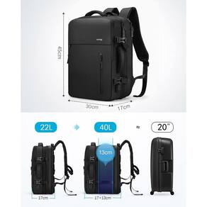 HOMIEE Mochila de viagem de mão para homens e mulheres 40L extra grande mochila de mão expansível aprovada para voos de fim de semana para laptop de 15,6 polegadas - EXPANSÍVEL E GRANDE CAPACIDADE: esta mochila versátil atende aos requisitos de bagagem de mão da companhia aérea, e você pode colocá-la acima e abaixo do assento. Esta mochila de viagem extra grande com recurso expansível oferece mais capacidade de embalagem. Abra o zíper para obter armazenamento de 40 l e pode facilmente guardar cubos de embalagem, bolsa de maquiagem, roupas, bolsa de câmera e equipamentos etc. É um presente ideal para homens, mulheres, viajantes de fim de semana ou férias ocasionais. - Vários compartimentos para viagens: o compartimento frontal é para pequenos equipamentos como notebook, caneta, telefone, fone de ouvido. O bolso interno grande tem tiras elásticas de compressão internas. As alças acolchoadas incluem uma alça de esterno que pode ser ajustada para cima ou para baixo, definida para atravessar o seu peito, aliviando o peso do seu ombro. Alças de compressão externas evitam que o conteúdo deslize por aí e podem obter 2,5 cm ou mais de espaço vertical, além de reduzir o desconforto nos zíperes. - Conveniente e fácil de transportar: a mochila de bagagem é leve para transportar devido às suas alças ajustáveis, painel traseiro ventilado com malha de ar confortável. Duas alças acolchoadas são colocadas na parte superior e na lateral da mochila de viagem, o que facilita levar a bolsa de um cesto suspenso. A melhor escolha para presentes masculinos e femininos. - Design anti-roubo e seco: a bolsa principal adota um design de zíper duplo. As duas cabeças de bloqueio podem ser travadas no meio para proteger seus pertences contra roubo. É muito conveniente para você alcançar seus itens preciosos. É projetado com bolsos de PVC de separação úmida e suja para materiais de lavagem, tornando sua viagem de negócios mais conveniente. - MATERIAL DURÁVEL E IMPERMEÁVEL: Feito de tecido de poliéster à prova de respingos e resistente a rasgos, resiste efetivamente a respingos de água da chuva, protege os itens de ficarem molhados, garante um uso seguro e duradouro todos os dias.
