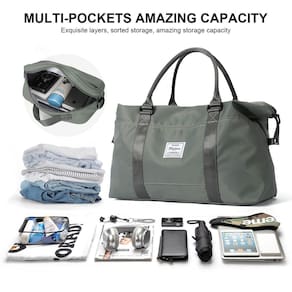 Bolsa esportiva de viagem, bolsa esportiva para academia, bolsa de ombro de fim de semana para mulheres com bolsa de higiene pessoal - ?Bolsa de fim de semana com bolsa de higiene pessoal?Bolsas de fim de semana para mulheres: (A x L x T) 27 x 55 x 18 cm /10,63 x 21,65 x 7,09 polegadas, bolsa de higiene: 24 x 7,5 x 16,5 x 16,0 cm. Grande espaço de armazenamento para roupas para viagens curtas. Tem uma capacidade de 30 L e pode armazenar de 6 a 8 peças de roupas de verão, cosméticos, artigos de higiene pessoal, carteiras, chaves, fones de ouvido, energia móvel, telefones celulares, arquivos. - ?Sacola separada a seco e úmido?O material resistente à água de alta densidade pode ajudar você a separar itens secos e molhados. Se você tiver roupas ou toalhas molhadas, pode colocá-la nesta bolsa tiracolo. Bolsa ou bolsa transversal como quiser, alça confortável e ajustável. - ?Bolsa noturna adequada para aviões?A bolsa de mão perfeita para viagens aéreas. A manga de carrinho integrada desliza sobre a alça de bagagem, facilitando as viagens no aeroporto. Sua bolsa de embarque ideal para o fim de semana para viagens de negócios ou pessoais. - ?Bolsa de viagem de ampla aplicação?A bolsa esportiva de ginástica é uma companhia perfeita e confiável para esportes internos e externos. É uma ótima bolsa de ombro para treino, viagens, atividades esportivas, tênis, basquete, ioga, pesca, caça, acampamento, caminhada e muitas atividades ao ar livre. Adequada para bolsa esportiva de academia, bolsa de viagem, bolsa de viagem, suporte de academia, etc. - ?O que você recebe?Uma bolsa esportiva de viagem HYC00 , uma bolsa de higiene pessoal e uma alça de ombro removível e ajustável: até 109 cm. Nossa garantia vitalícia sem preocupações, reembolso de 60 dias sem perguntas e atendimento ao cliente amigável. Observação: para proteger seus direitos e interesses, não assine o pacote se estiver danificado.